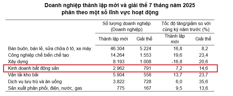 Theo số liệu của Cục Thống kê, trong nửa đầu năm 2025 có 2.589 doanh nghiệp kinh doanh bất động sản thành lập mới, tăng 15,8% so với cùng kỳ.