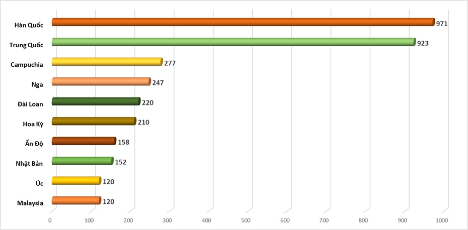 Thị trường Trung Quốc đứng thứ hai với khoảng 923 nghìn lượt khách, khẳng định quy mô của một thị trường lớn và tiếp tục là một trong những nguồn khách quan trọng nhất của du lịch Việt Nam. Trong khi đó, 2 thị trường Nhật Bản và Đài Loan duy trì đà tăng trưởng ổn định, góp phần củng cố vai trò của khu vực Đông Bắc Á trong tổng nguồn khách quốc tế.