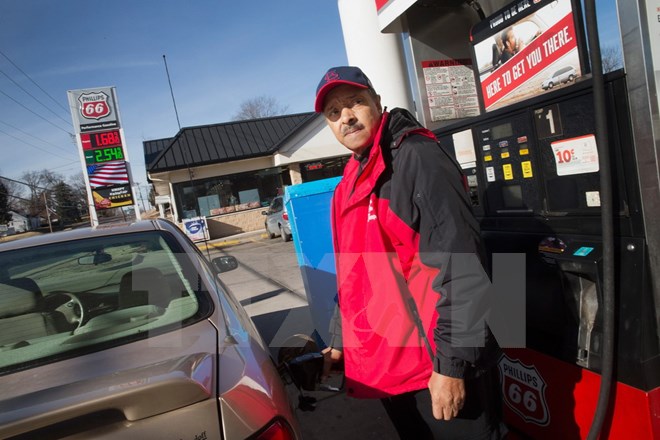 Một người dân mua xăng tại một trạm xăng ở Dellwood, bang Missouri, Mỹ. (Nguồn: AFP/TTXVN)