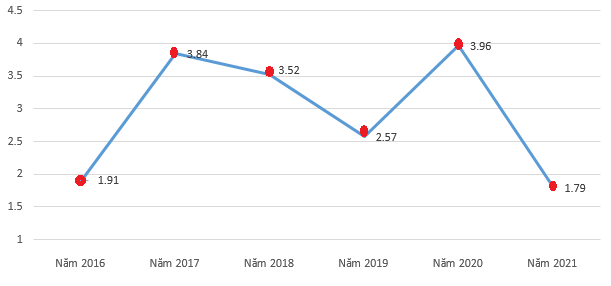 Tốc độ tăng CPI bình quân 8 tháng so với cùng kỳ năm trước các năm 2016-2021. Đơn vị: %