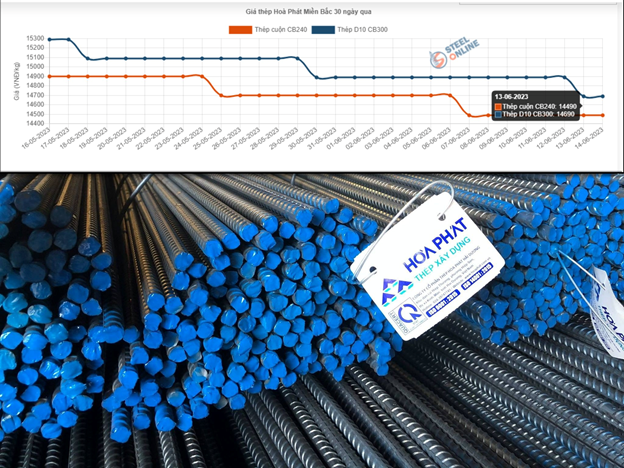 Cụ thể, thương hiệu thép Hòa Phát tại miền Bắc giảm thêm 200.000 đồng/tấn với dòng thép D10 CB300, xuống 14,69 triệu đồng/tấn; dòng thép cuộn CB240 vẫn được giữ ở mức giá 14,49 triệu đồng/tấn.