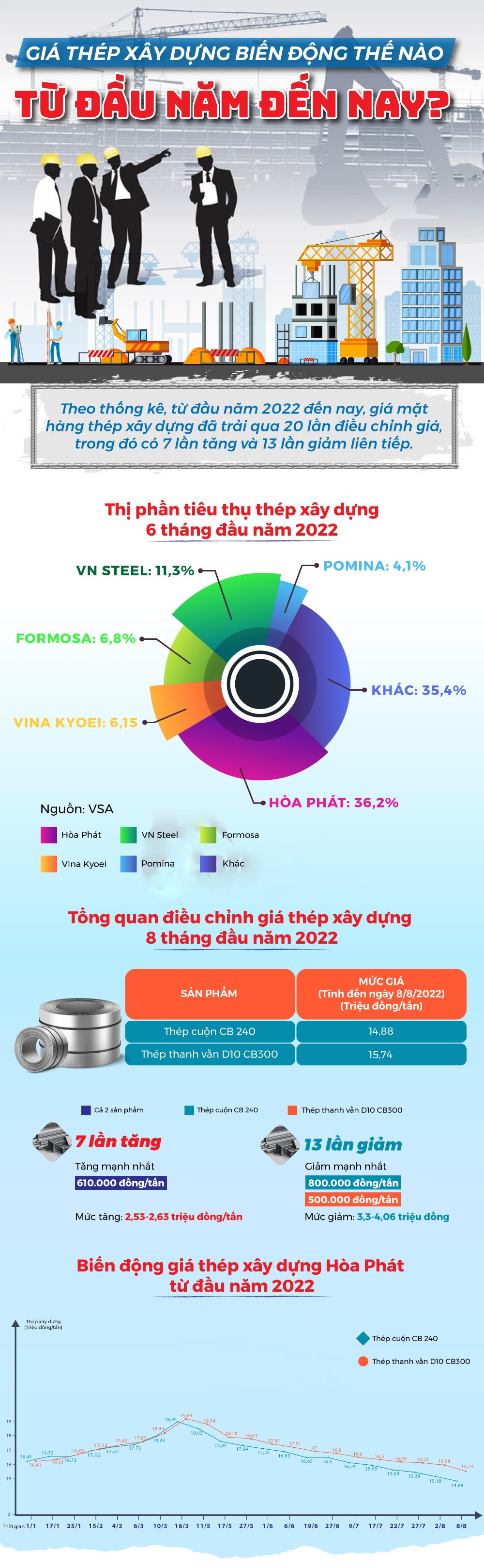 Trong đợt điều chỉnh giá mới nhất, mỗi tấn thép trong nước tiếp tục giảm thêm tới 1,31 triệu đồng. Chỉ trong 3 tháng qua, giá mặt hàng này đã giảm 13 lần liên tiếp.