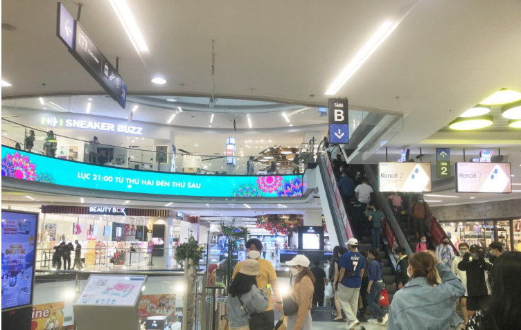 Tình trạng tương tự diễn ra tại TTTM Crescent Mall (Quận 7, TP.HCM). Lượng khách hàng chỉ tăng đột biến vào các dịp lễ hội, hoặc được cải thiện vào cuối tuần, các ngày còn lại không khí khá ảm đạm.