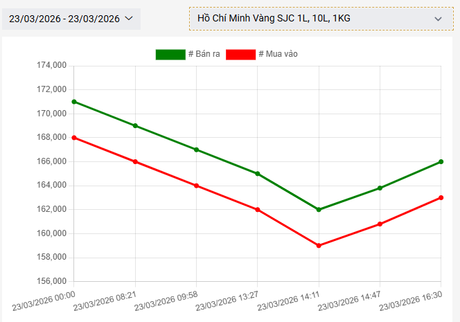 Cập nhật đến 16h40, giá vàng trong nước tăng trở lại mốc 166 triệu đồng/lượng.