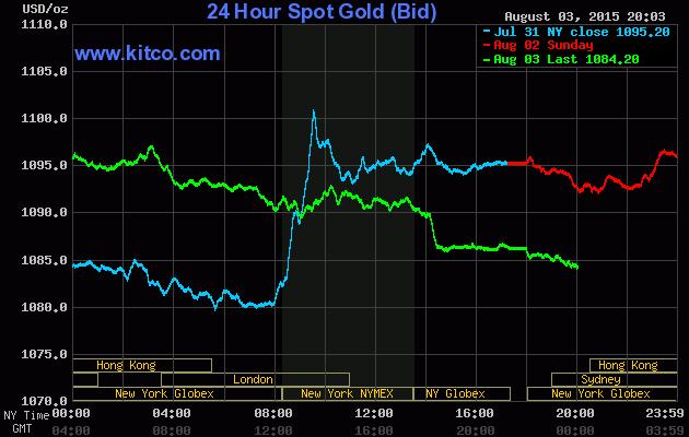 Sáng nay 7:00 theo giờ Việt Nam, giá vàng giao ngay trên sàn Kitco đứng tại 1.084,2USD/oz, giảm 11USD, tương đương 1% so với chốt phiên trước.