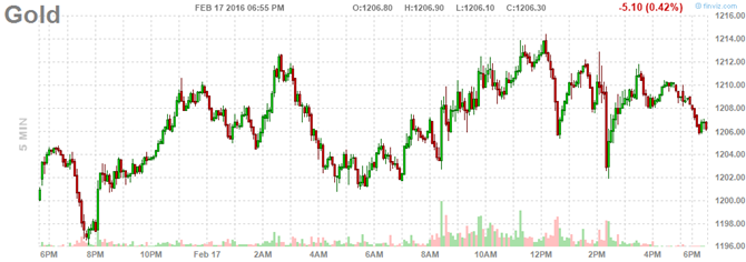 Diễn biến giá vàng trong phiên. Ảnh: Finviz