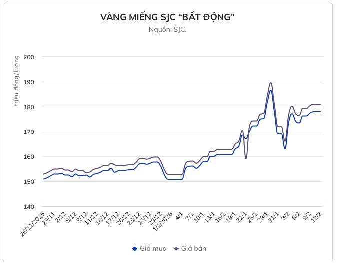 Trên biểu đồ giá ngày, kim loại quý này đang mắc kẹt quanh ngưỡng 181 triệu đồng/lượng - vùng giá từng chứng kiến những cú tăng giảm dữ dội. Trước đó, có thời điểm vàng miếng được điều chỉnh tới 10 triệu đồng/lượng chỉ trong một ngày, tạo nên những nhịp sóng lớn trên thị trường.