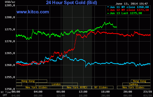 Sáng nay 7:00 theo giờ Việt Nam, giá vàng giao ngay trên sàn Kitco đứng tại 1.275,9USD, tăng 2,8USD, tương đương 0,2% so với chốt phiên trước.