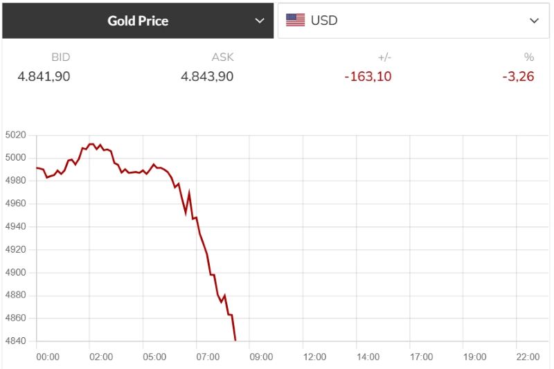 Theo Kitco, thị trường vàng tiếp tục gặp khó khi đánh mất mốc hỗ trợ quan trọng 5.000 USD/ounce. Sau áp lực bán kéo dài từ hôm qua, kim loại quý này đang đối mặt thêm lực cản khi lạm phát tại Mỹ có dấu hiệu nóng lên.