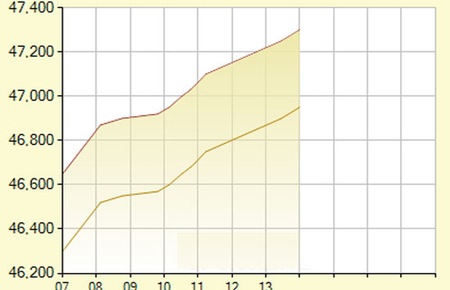 Lúc gần 16h chiều nay, Công ty Vàng bạc đá quý Sài Gòn (SJC) niêm yết giá vàng SJC cho thị trường Tp.HCM ở mức 46,95 triệu đồng/lượng (mua vào) và 47,3 triệu đồng/lượng (bán ra). Tại Hà Nội cùng thời điểm, vàng SJC được Công ty Vàng bạc đá quý Phú Quý mua vào và bán ra ở các mức giá tương ứng lần lượt là 47,12 triệu đồng/lượng và 47,28 triệu đồng/lượng.