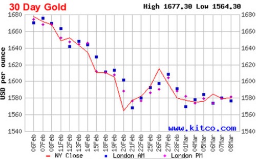 Trong phiên giao dịch ngày thứ Sáu, giá vàng ban đầu đã giảm khá mạnh khi báo cáo do Bộ Lao động Mỹ công bố cho thấy tình hình thị trường việc làm tốt hơn dự kiến. Trong tháng 2, nước Mỹ có thêm 236.000 việc làm mới, tỷ lệ thất nghiệp cũng giảm 0,2 điểm phần trăm, xuống còn 7,7%, mức thấp nhất trong 5 năm.