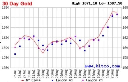 “Xung lực và các yếu tố kỹ thuật đều đang bổ trợ cho giá vàng. Đó là điều mà giá vàng đã thiếu trong một thời gian dài… Những kỳ vọng vào bài phát biểu ngày 31/8 của ông Bernanke ít nhất sẽ giúp giá vàng được hỗ trợ trong tuần tới”, chiến lược gia kim loại quý Edel Tully của ngân hàng UBS nhận định.