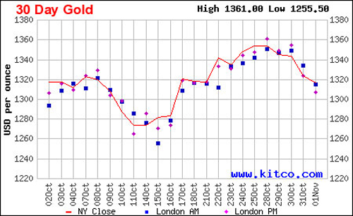 Kết thúc phiên giao dịch cuối tuần qua, trên sàn Comex của New York Mercantile Exchange, giá vàng giao ngay tại thị trường châu Á ở mức 1.315,8 USD/oz, thấp hơn giá đóng cửa phiên trước 6,9 USD/oz. Giá vàng giao hợp đồng tháng 12 chỉ còn ở mức 1.313,20 USD/oz, giảm 2,9% trong tuần.
