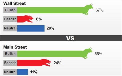 Khảo sát trực tuyến từ Main Street với những cá nhân có quan tâm đến thị trường kim loại quý cũng cho thấy, 291 ý kiến (tỷ lệ 66%) đưa ra nhận định giá vàng sẽ tăng; 106 ý kiến khác (tỷ lệ 24%) nhận định giá vàng sẽ giảm và 47 người (tỷ lệ 116%) cho rằng giá vàng sẽ đi ngang trong tuần tới.