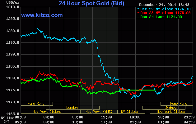 Giá vàng giao tháng Hai tụt 4,5USD, tương đương 0,4% xuống chốt tại 1.173,5USD/oz trên sàn Comex tại sở giao dịch New York Mercantile.