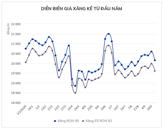 Như vậy, giá xăng trong nước đã giảm trở lại dù mới tăng lên trước đó. Từ đầu năm đến nay, mặt hàng xăng RON 95 đã tăng tổng cộng 22 lần, giảm 18 lần.