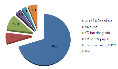 Phân theo lĩnh vực đầu tư, công nghiệp chế biến, chế tạo tiếp tục là lĩnh vực thu hút được nhiều sự quan tâm của các nhà đầu tư nước ngoài với 326 dự án đầu tư đăng mới, tổng số vốn cấp mới và tăng thêm là 4,8 tỷ USD, chiếm 70,2% tổng vốn đầu tư đăng ký trong 6 tháng năm 2014.