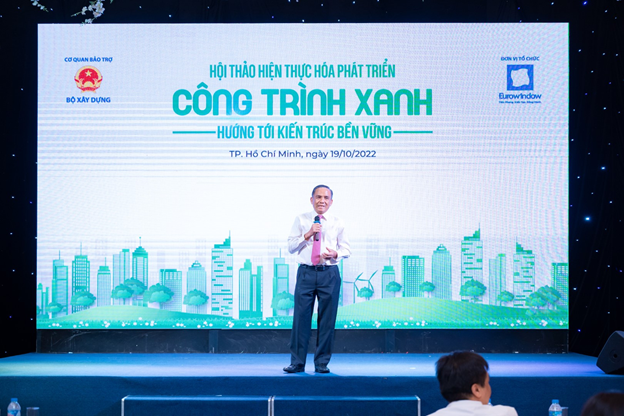 Ông Lê Hoàng Châu – Chủ tịch Hiệp hội Bất động sản TP.HCM chia sẻ về các giải pháp phát triển công trình xanh tại hội thảo