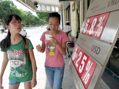 Nhiều ngân hàng vẫn giữ mức lãi suất thấp hơn mức quy định đối với tiền gửi bằng VND là 7%/năm - Ảnh: Ngọc Thắng