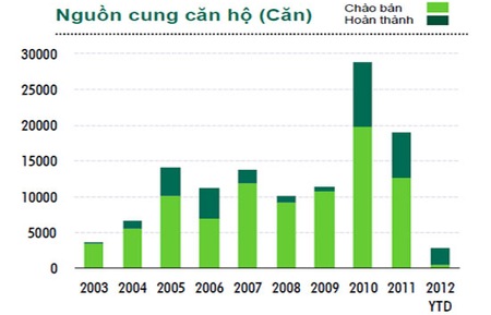Đối với nguồn cung mới, ParcSpring (quận 2) là dự án mới duy nhất chào bán trong quý 2/2012 với gần 120 căn hộ. The One – một trong 20 dự án nằm trên khu đất vàng của tập đoàn Bitexco cũng đã được khởi công.