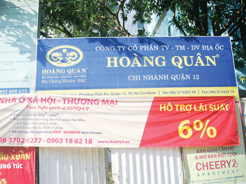 Từ thông tin mua căn hộ tại một số dự án của CTCP Địa ốc Hoàng Quân sẽ được vay lãi suất 6%/năm trong 10 năm, chúng tôi đến gặp nhân viên kinh doanh của công ty. Sau khi trình bày vợ chồng tôi là giáo viên trường công lập có mức thu nhập mỗi tháng 10 triệu đồng, có 2 con nhỏ, có nằm trong đối tượng được vay không, nhân viên này cho biết công chức nhà nước là đúng đối tượng được vay, nhưng thu nhập 10 triệu đồng e rằng khó được giải quyết.