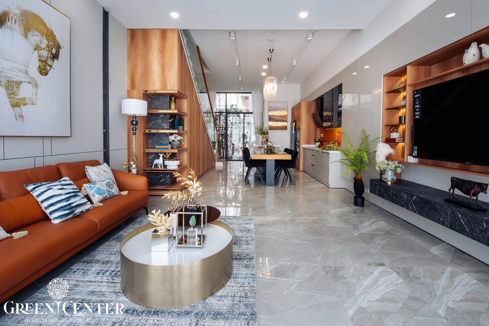 Lộng lẫy với thiết kế độc đáo như một resort 5 sao nhưng vẫn giữ nét văn hóa bản địa, ấm cúng và hòa quyện cùng thiên nhiên. Các căn nhà mẫu loại hình shophouse và villa tại Green Center ghi điểm với khách hàng từ điểm nhấn bên ngoài với những đường nét bắt mắt cùng hệ cửa kính rộng mở giúp gia chủ tận dụng tối đa ánh sáng và đón nắng đón gió tự nhiên, mang lại cảm giác thư giãn và tăng tính kết nối với thiên nhiên bên ngoài. Không gian mở của biệt thự golf cho phép chủ nhân tận hưởng tầm nhìn ôm trọn sân golf tuyệt đẹp và khu công viên xanh mát.