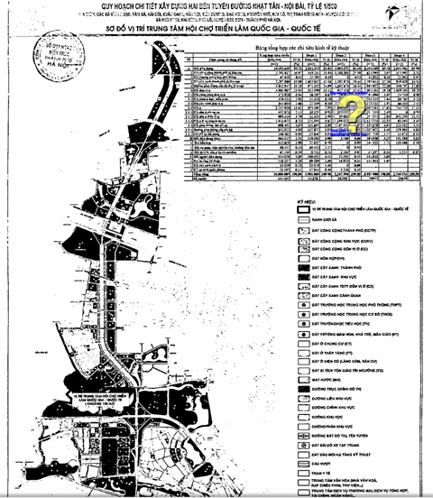 Theo Quy hoạch chung xây dựng Thủ đô đến năm 20130 và tầm nhìn đến năm 2050 đã được Thủ tướng Chính phủ phê duyệt, khu đất nêu trên nằm trong nêm xanh đầm Vân Trì- sông Thiếp (Phát triển các công trình hạ tầng xã hội, hạ tầng kỹ thuật, không phát triển nhà ở…) Tại đồ án Quy hoạch chi tiết hai bên tuyến đường Nhật Tân- Nội Bài xác định khu đất có chức năng là Trung tâm Hội chợ triển lãm kết hợp cây xanh công viên, mặt nước.