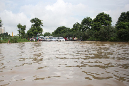 Tây Hà Nội như một biển nước khổng lồ sau một cơn mưa. Ảnh: Dân trí.