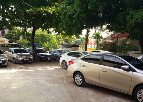 Ô tô đỗ kín sân một văn phòng giao dịch nhà, đất. Ảnh: Đức Tâm