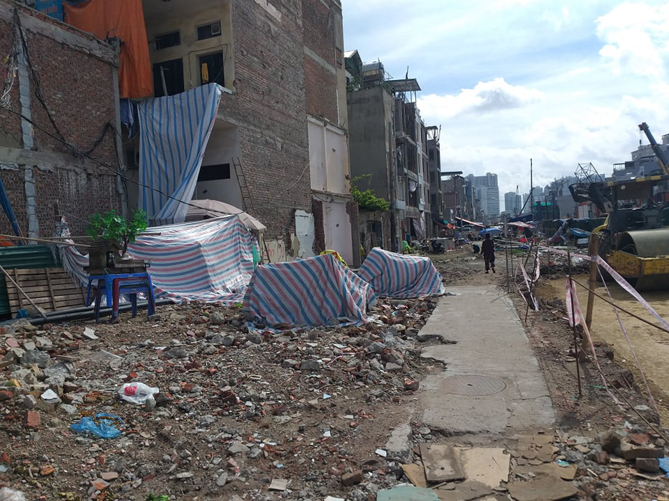 Theo khảo sát của PV Dân Việt, tại khu vực dự án quy hoạch mở rộng đường Vành đai 3 (đoạn từ cầu Vĩnh Tuy đến Ngã Tư Sở) đang là một đại công trường. Những dãy nhà mặt phố Minh Khai, Đại La và Trường Chinh đang rầm rộ xây mới sau khi công tác giải phóng mặt bằng được thực hiện.