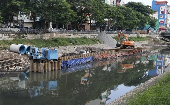 Các hạng mục để làm sạch sông Tô Lịch đang được thi công
