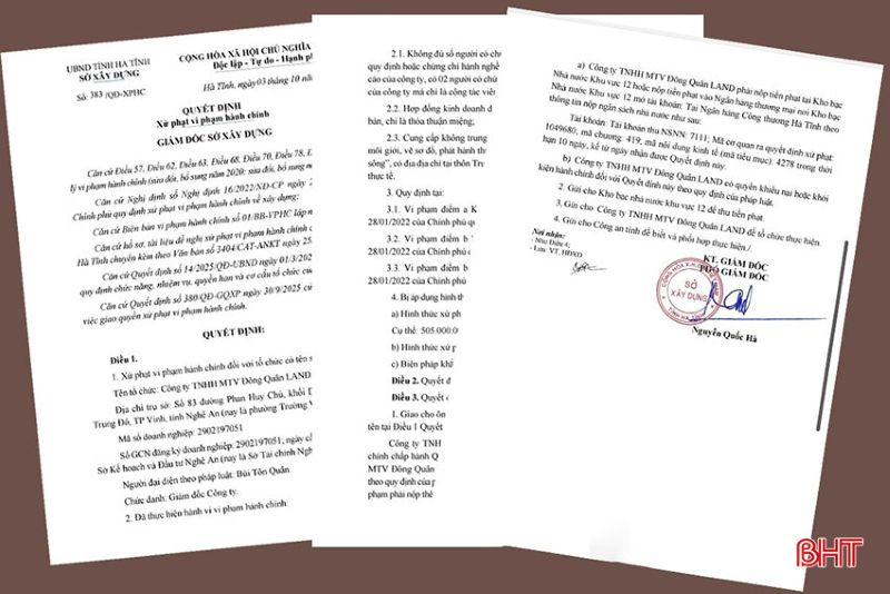 Hà Tĩnh xử phạt một doanh nghiệp bất động sản hơn 500 triệu đồng.
