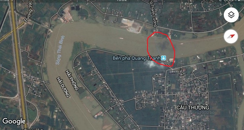 Vị trí (vòng tròn đỏ) sẽ xây dựng cầu Quang Thanh