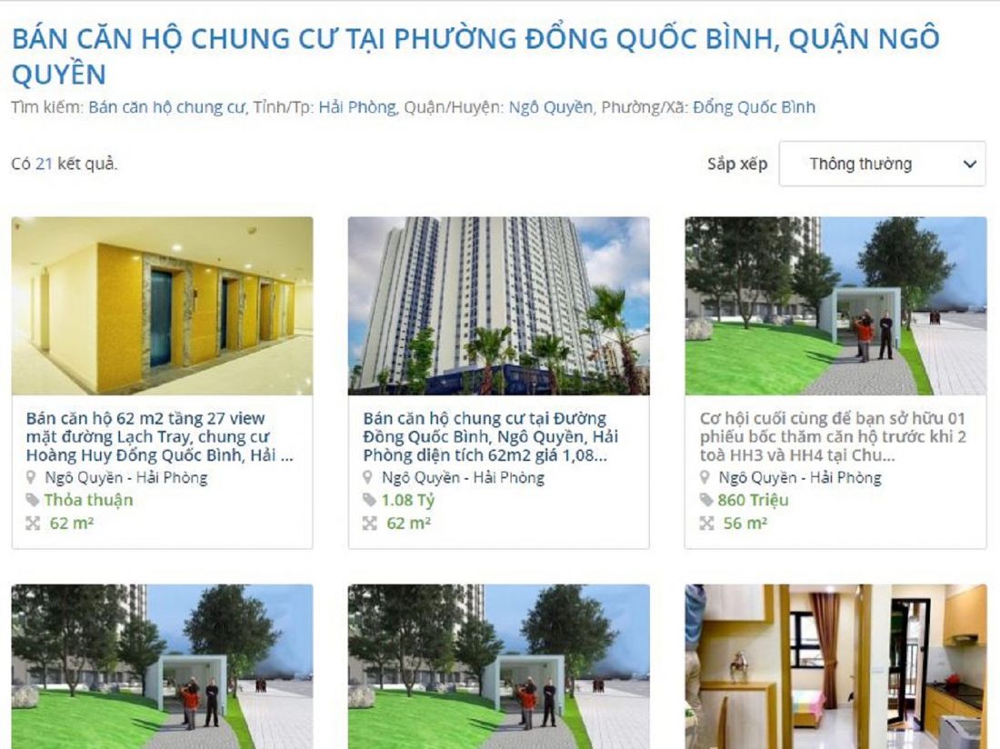 Các tin rao bán căn hộ Đổng Quốc Bình có thể dễ dàng tìm thấy ở bất kỳ trang rao vặt về bất động sản nào. Ảnh chụp màn hình