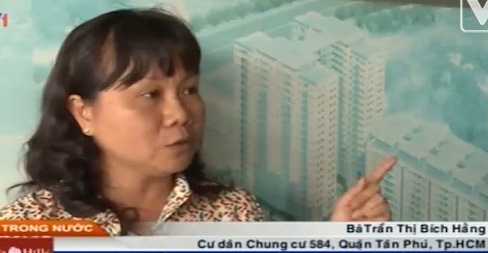 "Quyết định tháo dỡ, cho thời gian tháo dỡ nhưng chủ đầu tư chung cư 584 không thực hiện. Chúng tôi đã lên quận, Sở xây dựng rất nhiều lần nhưng bên này "đá" bên kia. Không biết ai là người đứng ra chịu trách nhiệm cưỡng chế các công trình này", bà Trần Thị Bích Hằng, cư dân chung cư 584, quận Tân Phú nói.