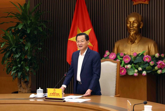 Phó Thủ tướng Lê Minh Khái phát biểu kết luận cuộc họp. Ảnh VGP