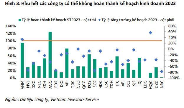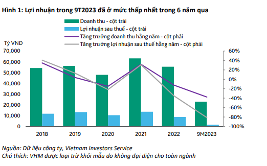 Báo cáo của VIS Rating cho biết, doanh thu và lợi nhuận của các công ty phát triển bất động sản trong 9 tháng đầu năm 2023 giảm đáng kể lần lượt là 38% so với cùng kỳ năm trước và 81% so với cùng kỳ năm trước, xuống mức thấp nhất trong sáu năm qua do hoạt động kinh doanh cốt lõi sụt giảm trong bối cảnh cung và cầu yếu.