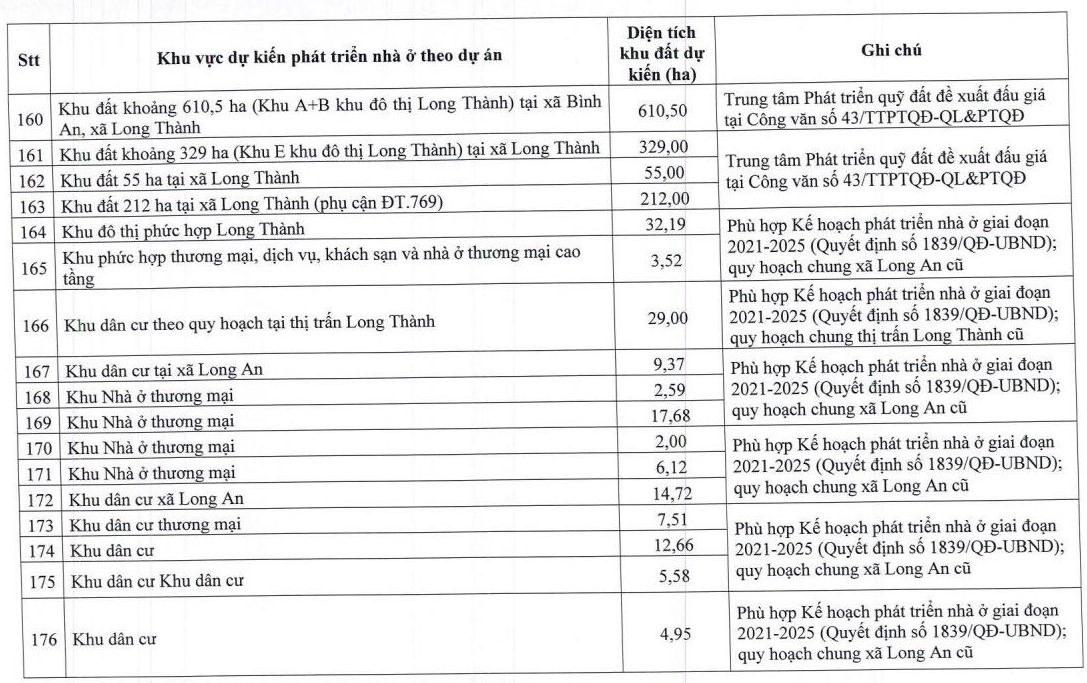 Theo Quyết định số 973/QĐ-UBND ngày 23/3/2026 của UBND tỉnh Đồng Nai (phê duyệt điều chỉnh Chương trình phát triển nhà ở tỉnh Đồng Nai giai đoạn 2021-2030), hàng loạt khu đất “khủng” tại khu vực Long Thành tiếp tục được xác định là quỹ đất phù hợp để phát triển nhà ở theo dự án đến năm 2030.