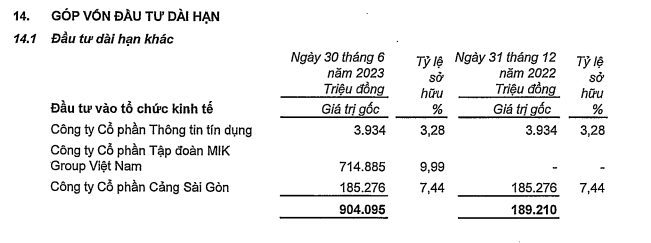 VPBank sở hữu 9,99% cổ phần Tập đoàn MIK Group Việt Nam.