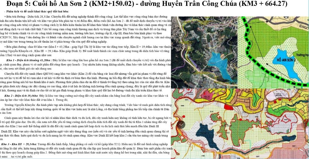 Đối với đoạn 5, cuối hồ An Sơn 2 – đường Huyền Trân Công Chúa có khu vực bên trái đường với diện tích 28,31 ha. Đây là khu vực đất nông nghiệp được bọc đất rừng. Khu vực có địa hình hơi dốc về phía rừng nên đề xuất là cụm đất công cộng và nhằm bảo vệ rừng.