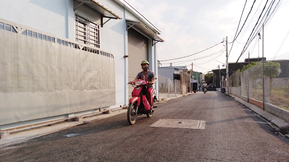 Ông Nguyễn Thành Nhân, người dân sống trên tuyến đường, nhớ lại: “Đường hẹp lại không có cống thoát nước nên mưa xuống là nước ngập sâu hơn nửa mét, tràn vào nhà. Mùa nắng thì bụi mù trời. Việc đi lại, di chuyển của bà con vì thế rất khổ sở. Giờ đường thật ngon”.