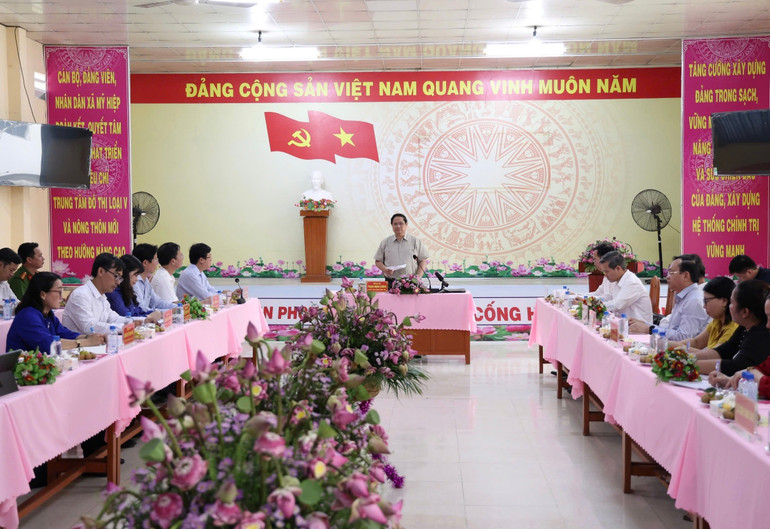 Thủ tướng Phạm Minh Chính kiểm tra mô hình chính quyền hai cấp tại xã Mỹ Hiệp, tỉnh Đồng Tháp.