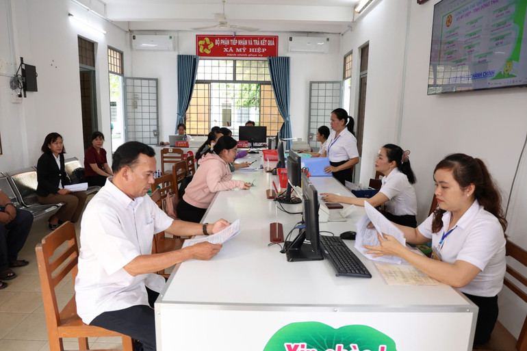 Người dân làm thủ tục tại Trung tâm phục vụ hành chính công xã Mỹ Hiệp, tỉnh Đồng Tháp.