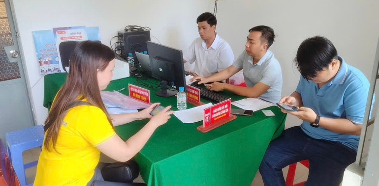 Người dân làm thủ tục tại Trung tâm phục vụ hành chính công phường Thới Sơn, tỉnh An Giang.