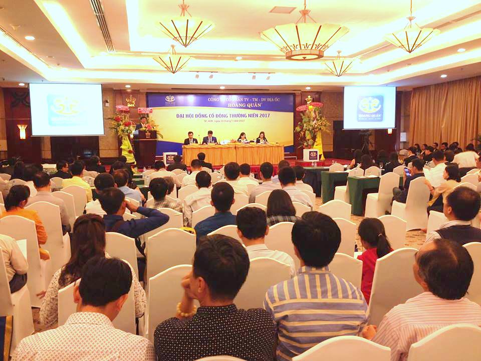 Tại đại hội, HĐQT còn trình cổ đông một số nội dung quan trọng như kế hoạch không chia cổ tức năm 2016 mà sử dụng lợi nhuận sau thuế của năm 2016 sau khi trích lập các quỹ để mua lại cổ phiếu làm cổ phiếu quỹ nhằm giảm số lượng cổ phiếu đang lưu hành, gia tăng giá trị cho cổ đông. Hoàng Quân dự kiến mua lại tối đa 30% số cổ phiếu đang lưu hành để làm cổ phiếu quỹ, phương thức giao dịch là khớp lệnh hoặc thỏa thuận.