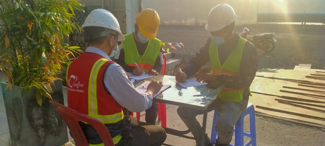 Các cá nhân làm việc tại công trường phải khai báo y tế, đeo khẩu trang và khử khuẩn đầy đủ