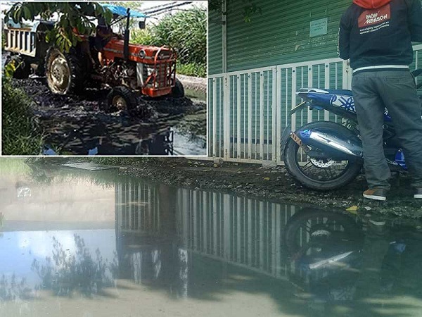 Liên tục trong ba năm qua, hai con đường này luôn ngập lụt (hai đường vuông góc và nối thông nhau), nước thải dâng cao quá đầu gối, đen ngòm, bốc mùi hôi thối không kể mùa mưa hay mùa khô.