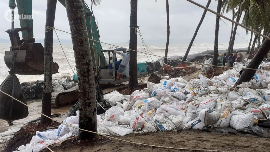 Đặc biệt, công tác kè, gia cố bảo vệ bờ biển càng được tiến hành khẩn trương hơn khi sóng biển vẫn đang lớn, tiếp tục đánh mạnh ăn sâu gây sạt lở bên trong và kéo dài tại bờ biển.