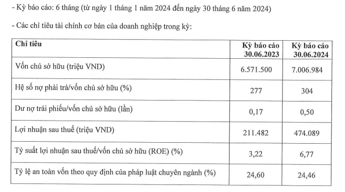 Tính đến cuối quý 2/2024, vốn chủ sở hữu của Home Credit Việt Nam đạt 7.007 tỷ đồng, tăng 254 tỷ đồng hay gần 4% so với thời điểm cuối năm ngoái. Tổng nợ phải trả gấp 3,04 lần vốn chủ sở hữu, tương ứng khoảng 21.301 tỷ đồng, tăng hơn 13% so với cuối năm 2023. Dư nợ trái phiếu khoảng 3.500 tỷ đồng, gấp ba lần so với thời điểm cuối năm ngoái.