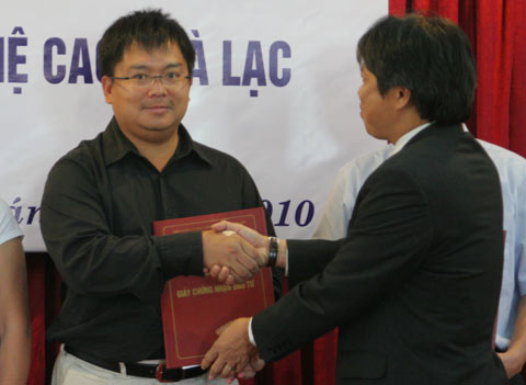 | Thứ trưởng Nguyễn Văn Lạng trao giấy phép đầu tư cho đại diện Tập đoàn FPT. Ảnh: Tiến Dũng. |